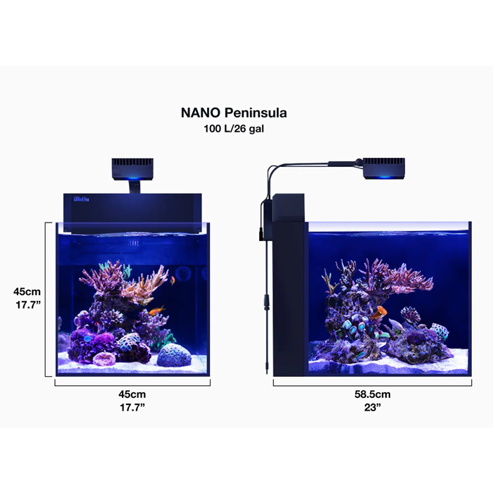 The MAX NANO Peninsula is the same height and width as the MAX NANO Cube, but its larger depth adds almost 40% more to the display space. This additional depth keeps the reef compact, but provides more room for corals and allows for more impressive reefscapes.